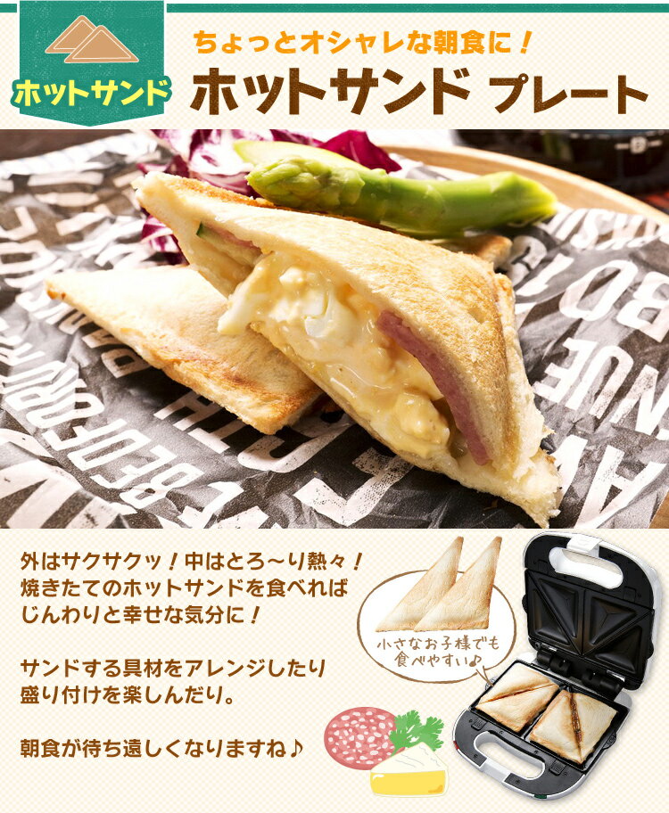 ■商品サイズ(cm)幅約24.6×奥行約25.7×高さ約11■重量約2.3kg(ホットサンドプレート含む)■電源AC100V(50/60Hz)■消費電力700W■付属品ホットサンドプレート、ワッフルプレート、ドーナツプレート両面をこんがり焼けるマルチサンドメーカーです。